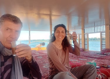 Depuis mon premier voyage en Égypte avec ma fille, j'avais senti naître en moi une passion brûlante. Les pyramides de Gizeh, majestueuses sous le soleil couchant, les temples de Louxor baignés de mystère, et les hiéroglyphes gravés dans la pierre me parlaient comme une langue ancienne. Chaque retour en France n’était qu’une attente impatiente avant mon prochain départ