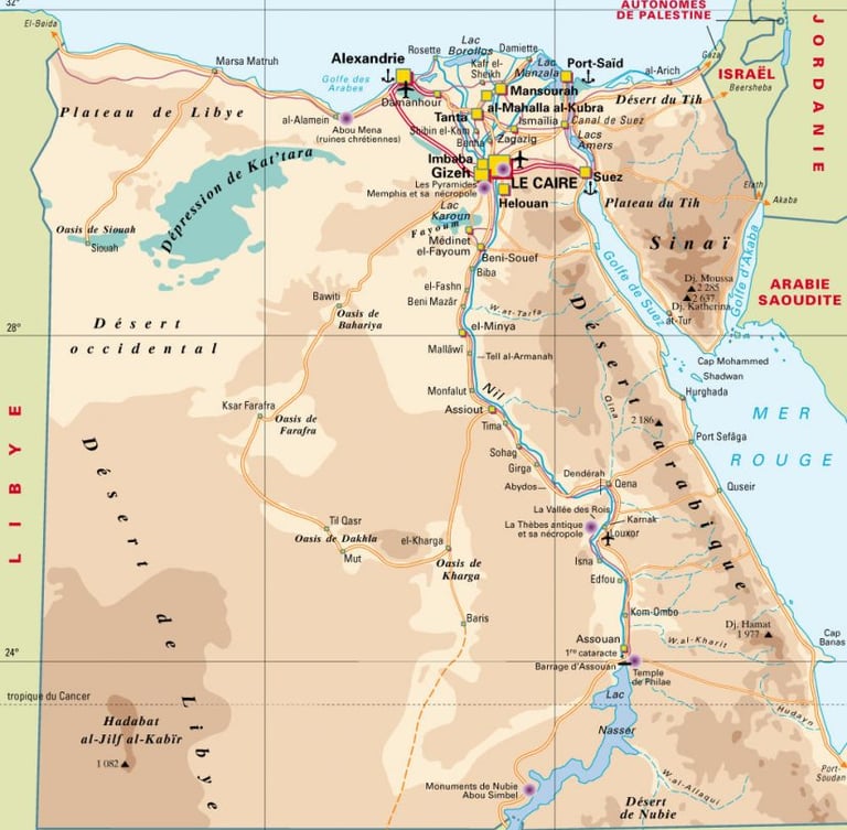 Trouver des itinéraires, des adresses et lieux d'intérêt en Egypte